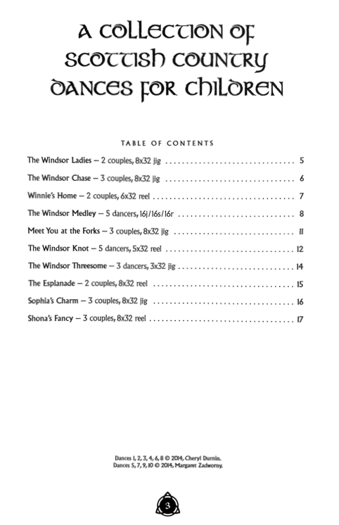 Margaret Zadworny: Meet You at the Forks (3 couples, 8×32 jig), The Windsor Threesome (3 dancers, 3×32 jig), Sophia’s Charm (3 couples, 8×32 jig), Shona’s Fancy (3 couples, 8×32 reel)